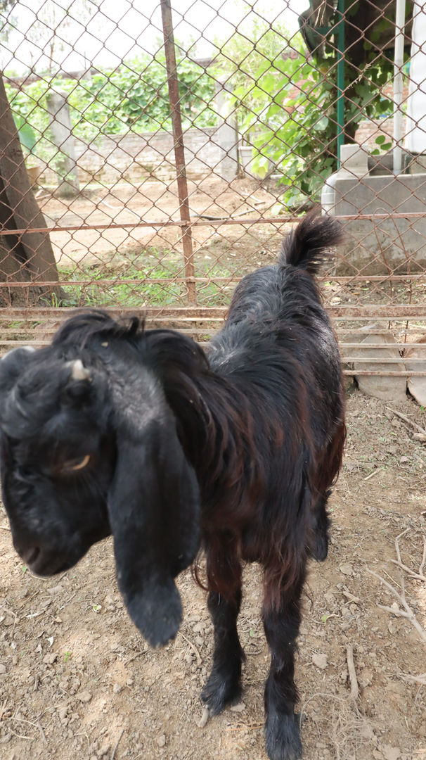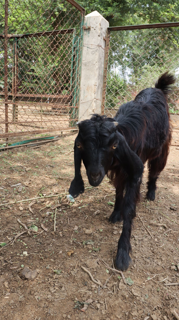 Kajal is a graceful soul who enjoys both human company and the quiet beauty of the outdoors. She greets visitors warmly, often following them around the pasture. Her affectionate nature has earned her many friends here.